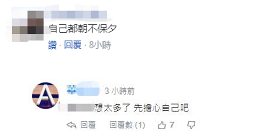 對於台防務部門負責人的這番戲碼,有網友諷刺説,“自己都朝不保夕”“想太多了,先擔心自己吧”。 ↓