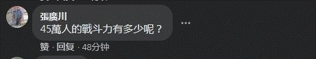 有網友質疑45萬人的戰鬥力,“後備軍人召集之後都不用回爐重新訓練?”“演習一次看看!”