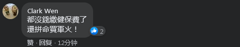 還有人批評稱,“都沒錢繳健保費了,還拼命買軍火!”