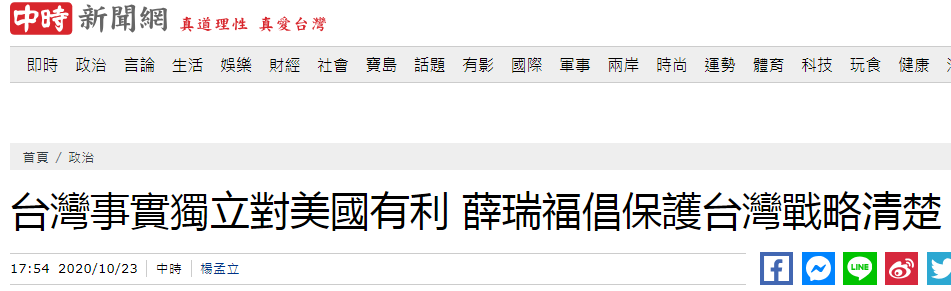 又打氣?已卸任的美國防部印太安全事務助理部長還在説,美國不會拋棄台灣