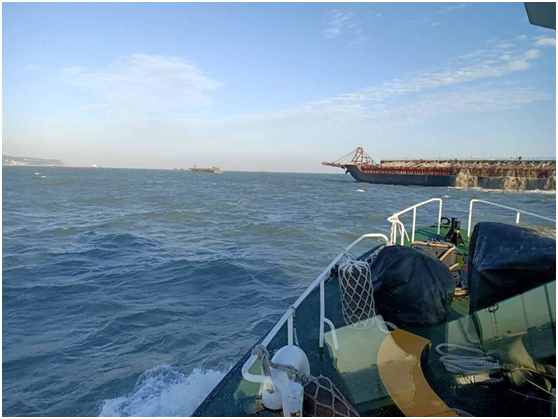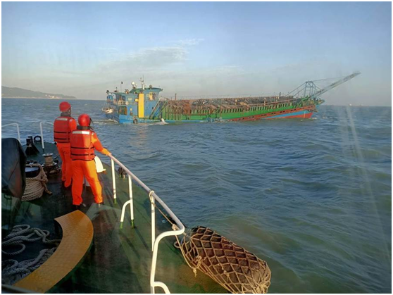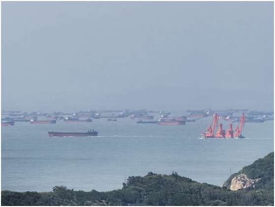 台灣海巡隊出動前往“驅離”大陸抽砂船。圖源:中時新聞網