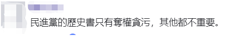 還有網友諷刺説,民進黨的歷史書只有奪權貪污,其他都不重要。↓