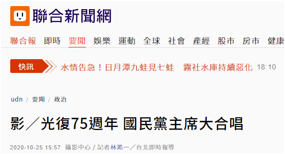 據台灣“中央社”“聯合新聞網”報道,今天(25日)適逢台灣光復節,國民黨下午在台北市舉辦台灣光復75週年紀念音樂會。國民黨主席江啓臣、台灣地區前領導人馬英九、前黨主席吳伯雄、朱立倫、吳敦義等歷任黨主席,以及黨秘書長李乾龍等人,都一同參加。