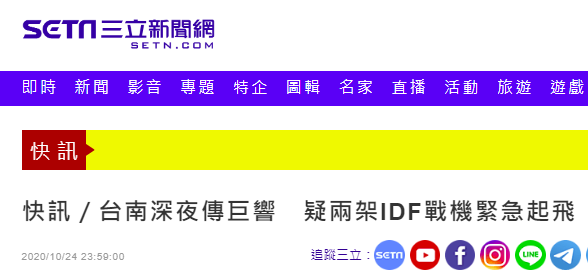 據台灣“三立新聞網”報道,多名網友在“台南爆料公社”發文稱,24日晚間11時06分左右,聽到戰機起飛的聲音,詢問“我耳朵沒聽錯吧?剛剛又有緊急起飛嗎?”↓