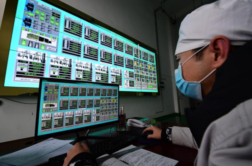 他解釋稱,車間裏每台設備閥門、連接口等都設置有專門的設備和線路,設備運行情況即時連入電腦網絡便可傳輸到中控室的電腦大屏,工作人員從大屏上就能清楚看到每台設備的詳細數據參數:壓力、温度、液麪高度等,對投料、關鍵生產環節的加工過程進行即時監控,當出現異常問題時(加工過程跑料等情況),系統還具備故障報警及停機控制,工作人員可聯動車間內的工人一起對過程進行核查,並且實現全程單據無紙化改造工作。