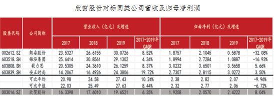 目前A股市場已經有朗姿股份、錦泓集團、歌力思、安正時尚等多家女裝企業,與同行業的公司相比,欣賀股份的盈利能力和業績增幅明顯佔優。