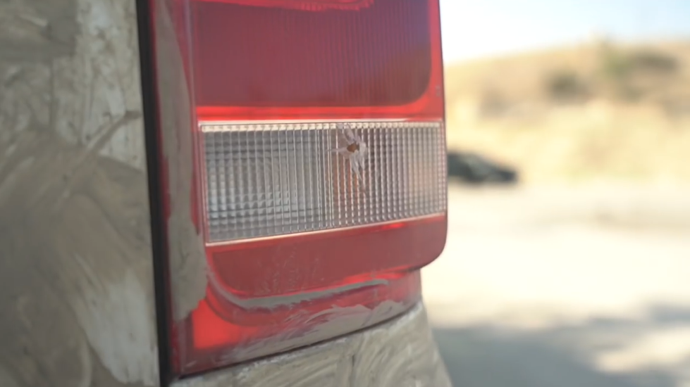 從畫面中可以清晰地看到這枚導彈從車輛的左前方快速飛來,從距離車頂只有數米的地方飛過。報道稱,這枚導彈隨後擊中了車輛後方的地面,爆炸產生的破片造成了車輛損壞。在抵達安全區域後,這名記者下車進行了檢查,發現車身的後部、尾燈等多處被破片擊傷。