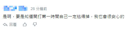 也有網民諷刺,“是啊,要是知道開打第一時間自己一定逃得掉,我也會很安心的。”↓
