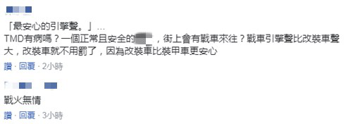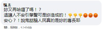 在蔡英文臉書的評論區,有網民留言稱,“這讓人不安引擎聲可是你造成的!安心?説鬼話騙民眾真的是你的專長耶。” ↓