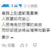 島內普通人真的安心嗎?網民留言中,有人警告“戰火無情”,更有人爆出粗口:“TMD有病嗎?” 反問一個正常且安全的地區,街上會有戰車來往?