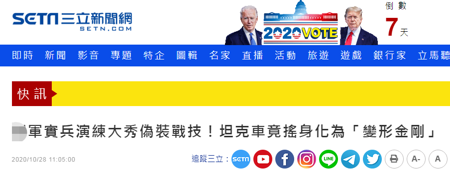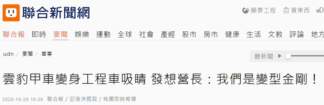 對於台灣陸軍584旅中校聯兵營長張孟蒼口中的“變形金剛”,台灣各大媒體今天(28日)都進行了報道。↓