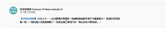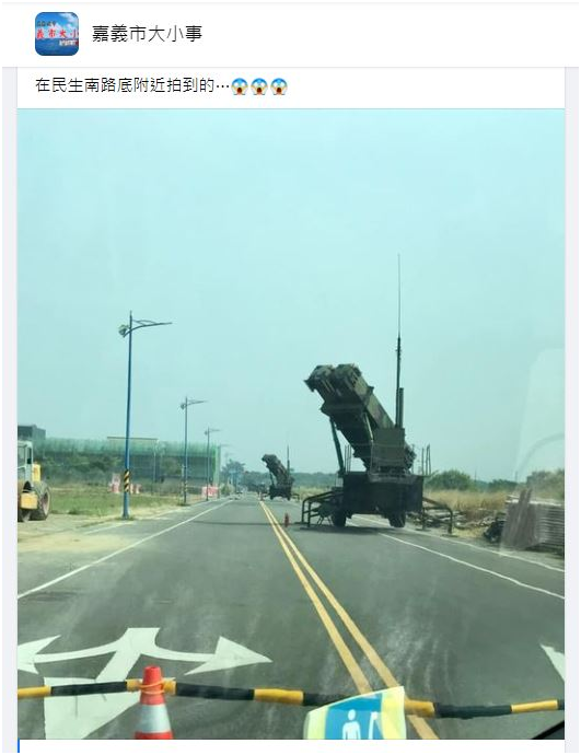 《聯合報》稱,有民眾當天先是在社交媒體臉書上發佈了一張照片,畫面中有兩輛導彈車一前一後停在大馬路上,車上的發射裝置呈現60度角,且在視野範圍內,周圍沒有任何士兵軍官。據其透露這是在“在民生南路底附近拍到的”,還附上兩個表示驚恐的表情。