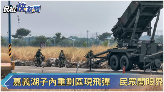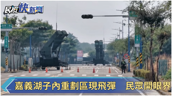 “民視新聞”介紹稱,29日上午,一台台導彈車,陸續開進嘉義市湖子內重劃區內,路過的民眾都嚇了一跳,一開始還以為是要開戰了,其實這是台軍進行的“聯合防空作戰訓練”。