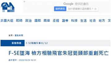 台軍機墜海,台媒:檢方判斷飛行員頭部受重創導致死亡