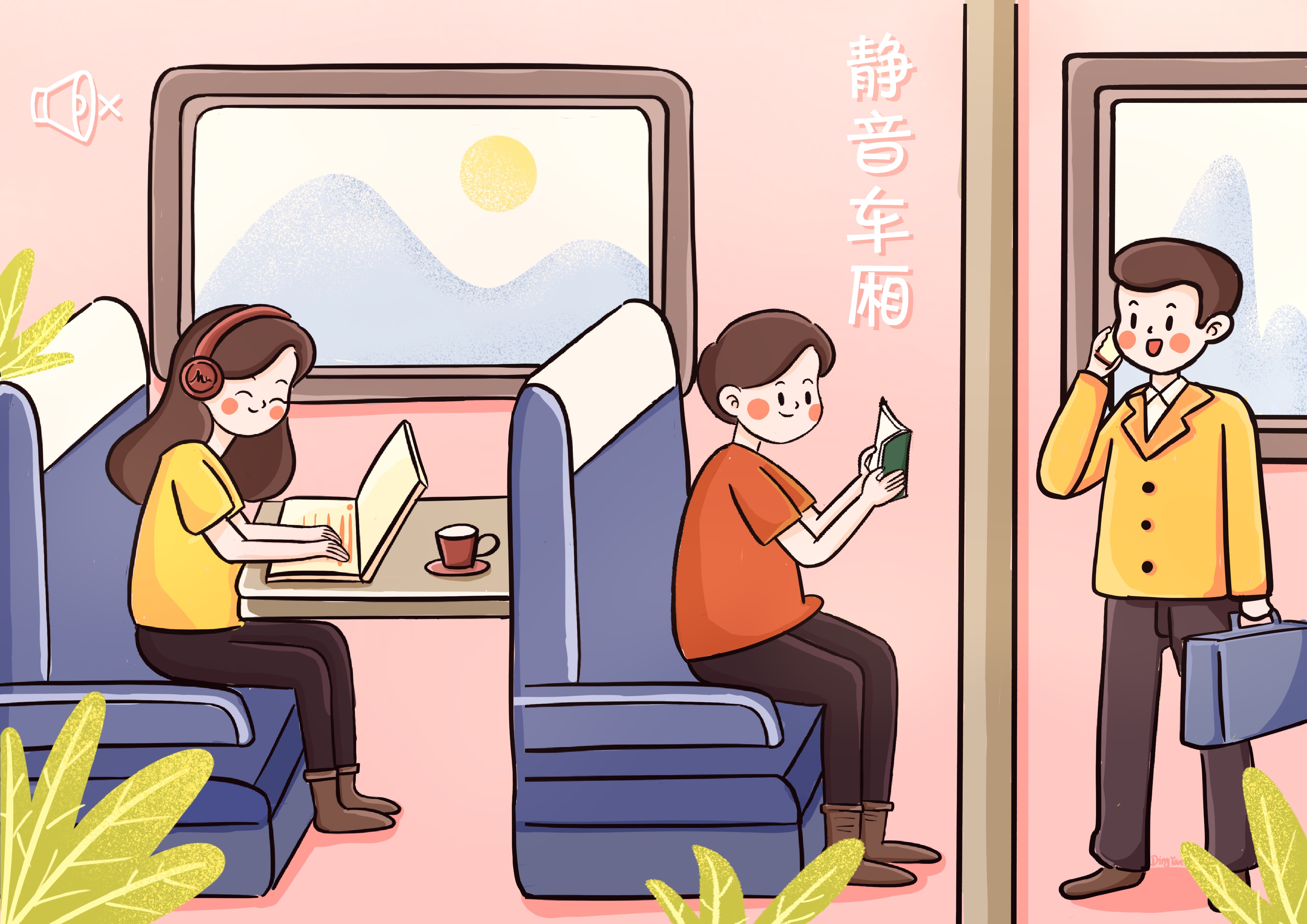 不少旅客都有過在車廂內被噪音打擾的經歷,“熊孩子”的哭鬧和追逐嬉耍有人接打電話聲音太大,有人用電子設備外放聲音,噪音幾乎是所有高鐵乘客都要面臨的困境。“靜音車廂”體現的不僅是以民為本的人文關懷,更是公共服務人性化的一種有益探索,值得其他公共管理部門效仿與推廣。