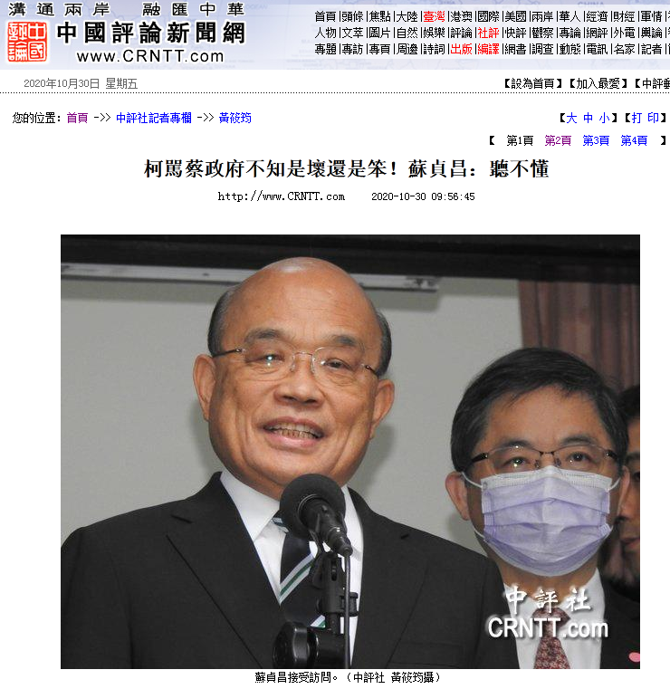 中評社稱,台立法機構今天邀請蘇貞昌率“閣員”進行“施政報告”,並備質詢。但蘇還沒到立法機構前,國民黨“立委”再度霸佔主席台,不讓蘇以及“閣員”上台,這已經是本會期第五次。而蘇貞昌在出席立法機構“施政報告總質詢”時還接受了媒體聯訪,被問到柯文哲批評民進黨當局“到底是壞還是笨?”他僅簡短回應,“我聽不懂他説什麼”。