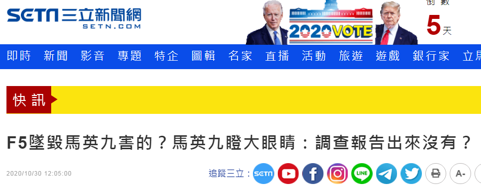 “三立新聞網”稱,馬英九今天(30日)上午出席活動時被問到“有綠營人士説戰機墜毀您要負責,因為您八年內任沒有專心研發戰機?”馬英九這時露出訝異的表情,瞪大着眼説:“調查報告出來沒有?調查報告沒有出來,要我負責任,這什麼邏輯啊。”