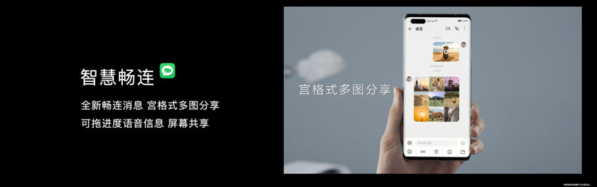 EMUI 11暢連也帶來了更多智能體驗,包括宮格式多圖分享、可拖進度語音信息、屏幕共享等,讓你與家人朋友在交流溝通時,更加自由。