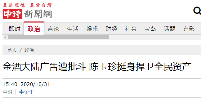 台灣親綠媒體《自由時報》稱,陳亭妃説,這樣的海報讓人一看就感覺“是在講中國的家跟國”,金酒要慶祝的到底是哪個家跟哪個‘國’?”“難道為了賺人民幣,就可以把自己‘國家’矮化嗎?”她説,就算只是營銷手法,也不能“把家跟‘國’變不見”。