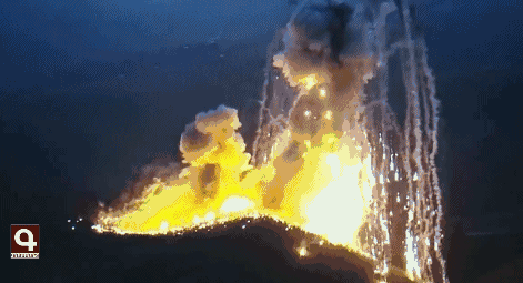 報道稱,在曝光的畫面中,可以看到白磷彈落在了山頭的樹木上,現場火光沖天。根據相關的國際公約,對平民集中的軍事目標使用空投白磷彈是完全禁止的。