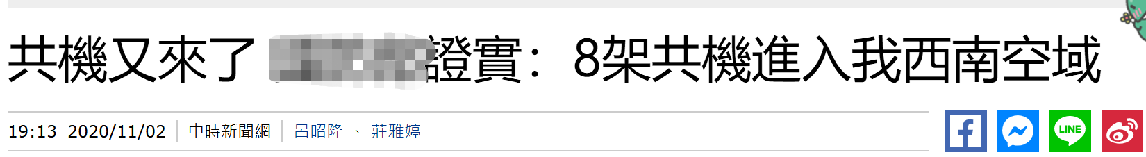 據報道,台灣防務部門今晚發佈,有8架解放軍軍機進入台灣西南空域,是近日較多的1次。這也是解放軍本月第二次進入台空域,昨日(1日)是一架次運8技術偵察機,進入台灣西南空域。