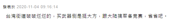 也有網友説,“台灣街道破破爛爛的,買武器倒是挺大方”。 ↓