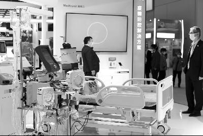 復星醫藥的展台上展出了一輛負壓救護車。據介紹,這款由奔馳公司改造的救護車配備德國進口負壓過濾裝置會淨化過濾空氣,避免了轉運病患中交叉感染的風險。抗疫期間,復星醫藥共生產了300多輛此類救護車,其中不少被運用在火神山和雷神山等武漢抗疫前線。“現在新冠疫情還沒有徹底結束,國家對防疫用品的儲備有很多需求,各地對這款車的儲備需求也很高,市場需求很大,”復興北鈴(北京)醫療科技有限公司銷售總監閻克瑋對《環球時報》記者表示。