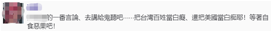 “‘外交部’的一番言論、去講給鬼聽吧……把台灣百姓當白痴、還把美國當白痴耶!等着自食惡果吧!”↓