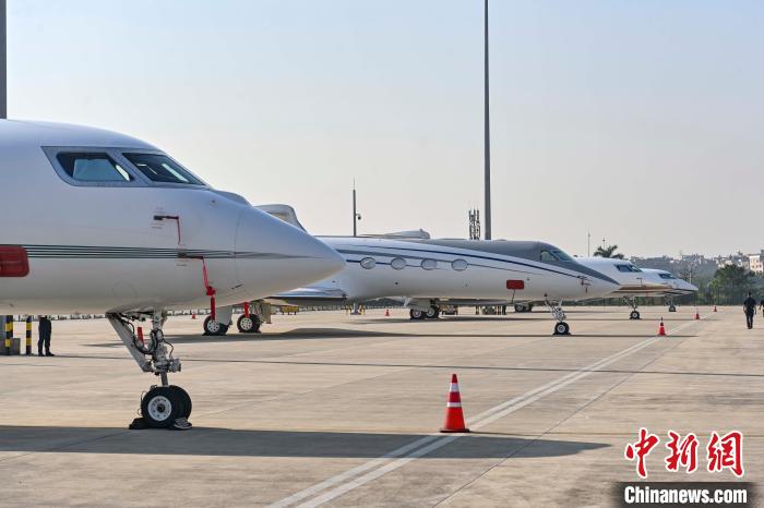 中新網廣州11月7日電 (記者 郭軍)11月6日,第三屆中國廣州商務航空展在廣州白雲國際機場商務航空服務基地(簡稱“白雲機場FBO”)開幕。15架世界知名公務機集中亮相。