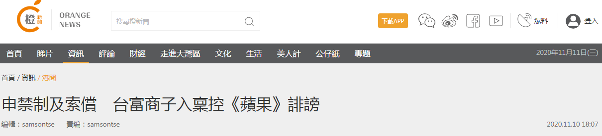 台灣富商之子再控告《蘋果日報》誹謗,向法庭申請禁制及索賠