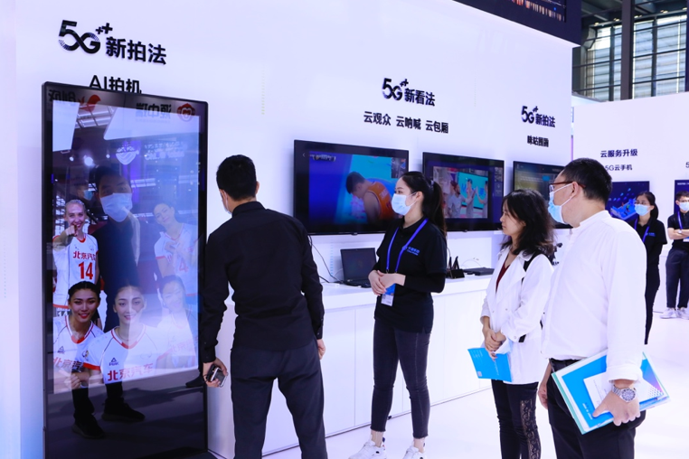 新看法展區主要呈現超高清視頻內容、移動雲VR和5G雲觀眾觀賽黑科技。“5G雲觀眾”是國內唯一一款在線觀賽+現場聯動的互動直播產品,實現了比賽畫面、用户視頻、雲觀眾畫面的多屏同看。用户現場佩戴VR頭盔,沉浸式感受體育、綜藝、影視等豐富的IP內容。咪咕公司打造了超高清視頻與超高清直播的內容、網絡、體驗全球全鏈路平台,5G用户可在電視、手機、VR/AR等終端感受超高清畫面和沉浸式臨場體驗。