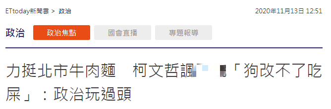 官員把牛肉麪業者“拉下水”,柯文哲諷刺台“行政院”:“狗改不了吃屎”