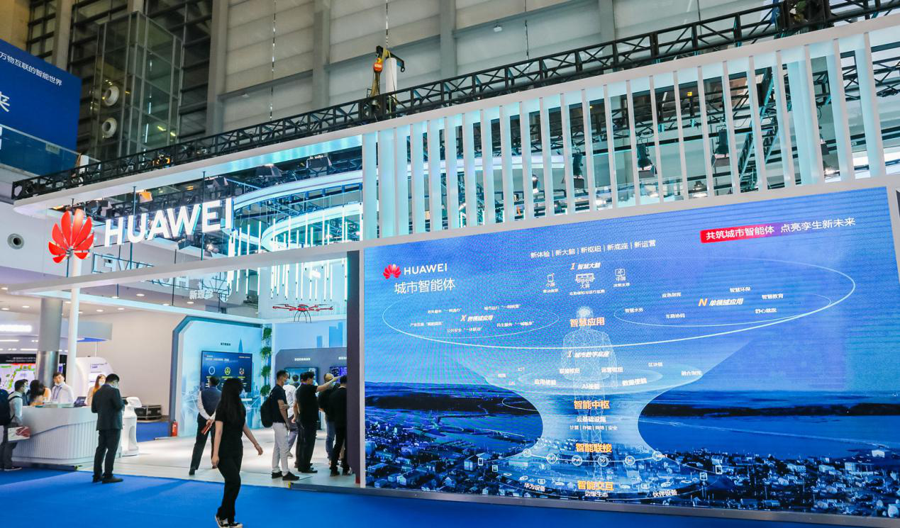 整個華為展台共有270餘平方米,展示以新理念為引領,在數字化新基建基礎上,涵蓋新治理、新生活、新經濟的全場景智慧解決方案,讓參觀者在充滿科技感的展示環境中體驗與互動,感受城市的智慧之美。
