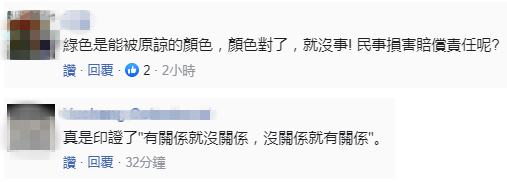 有網友看了“刑事局”的這個説法後直呼,“綠色是能被原諒的顏色,顏色對了,就沒事!”“真是印證了‘有關係就是沒關係,沒關係就是有關係’。”
