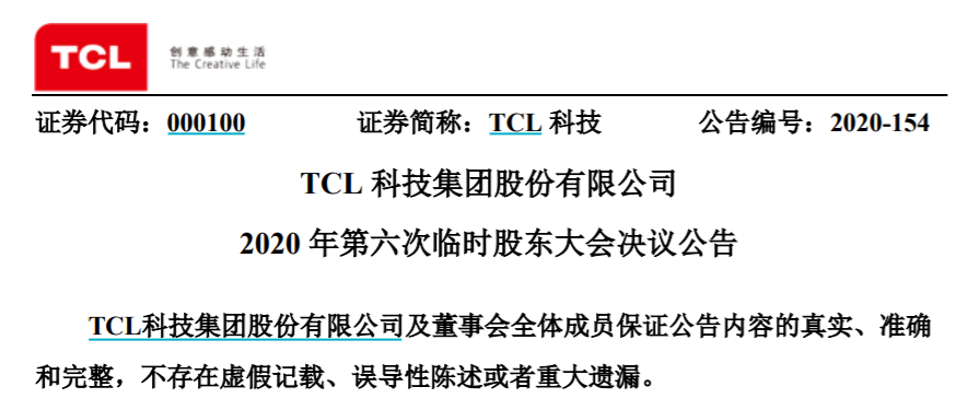 11月13日晚,TCL科技發佈《2020 年第六次臨時股東大會決議公告》。公告顯示,TCL科技第七屆董事會換屆選舉議案獲得通過,李東生、梁偉華、杜娟、金旴植、廖騫、沈浩平當選第七屆非獨立董事,幹勇、陳十一、萬良勇、劉薰詞當選第七屆獨立董事。