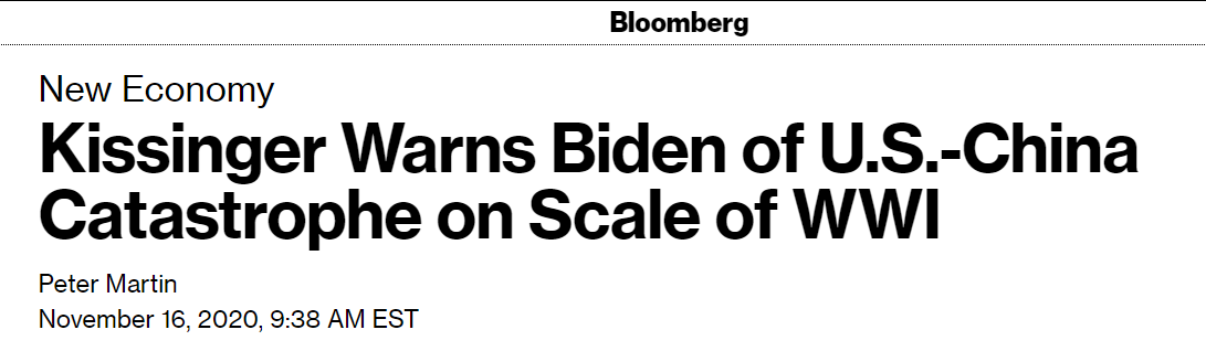 基辛格警告:拜登政府需迅速恢復美中溝通渠道,否則世界將陷入堪比一戰的災難