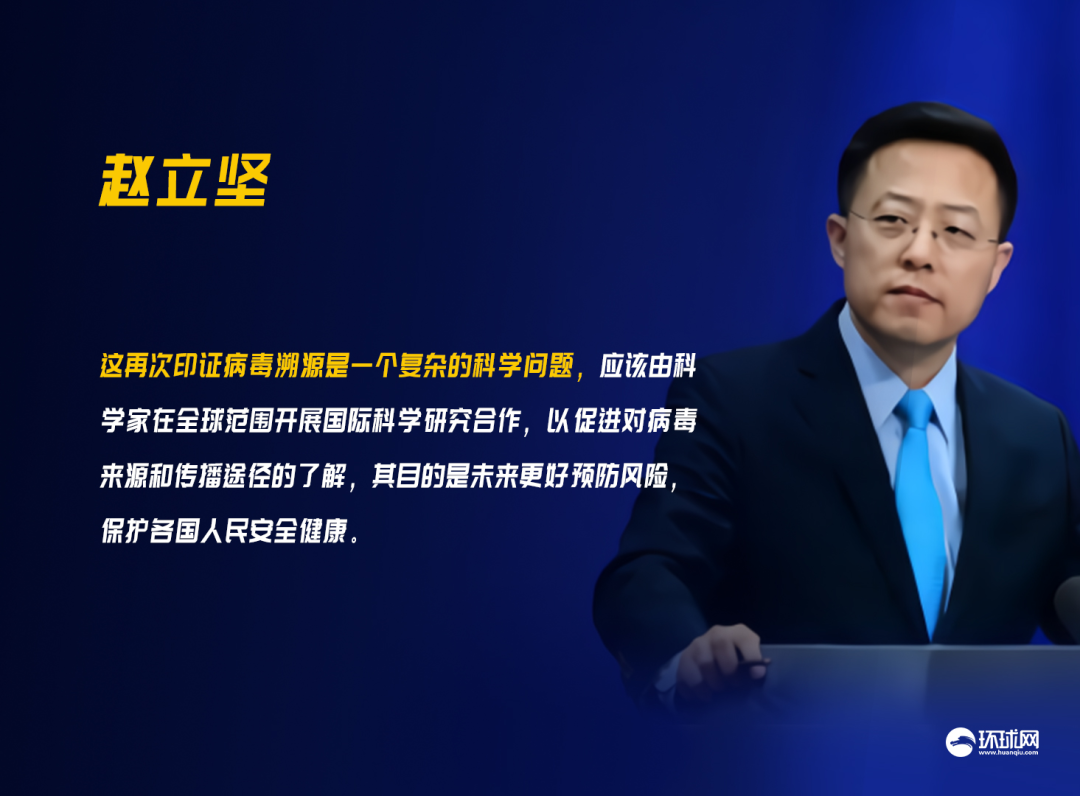 趙立堅稱,病毒溯源是一個持續發展的過程,可能涉及多國多地。中方希望各國都採取積極態度,加強同世衞組織的合作。中國也將加強同世衞組織的合作,積極參與,並與國際社會一道,為全球病毒溯源作出貢獻。