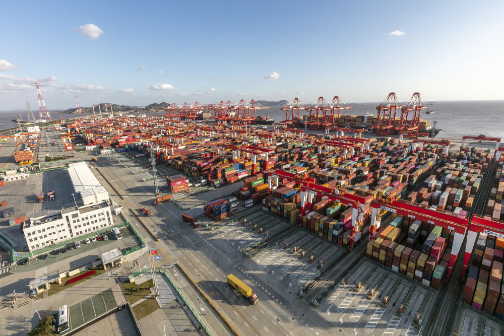11月3日拍攝的上海洋山港集裝箱碼頭。(新華社記者王翔攝)