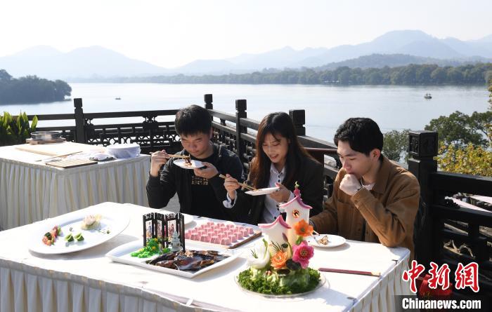 中新網杭州11月12日電 (江楊燁)“我的爺爺是浙江杭州人,現居住在台灣,他最懷念的就是杭州的美食。”杭州電子科技大學電子信息專業學生陳廣和來自台灣,他一邊品嚐着杭州百年老店樓外樓製作的美食,一邊説道。