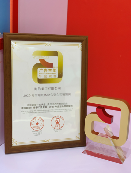 11月15-17日,第27屆中國國際廣告節在廈門召開。海信集團憑藉“海信超級體驗官”項目的出眾表現,斬獲“中國國際廣告節廣告主獎·2020年度整合營銷案例”。