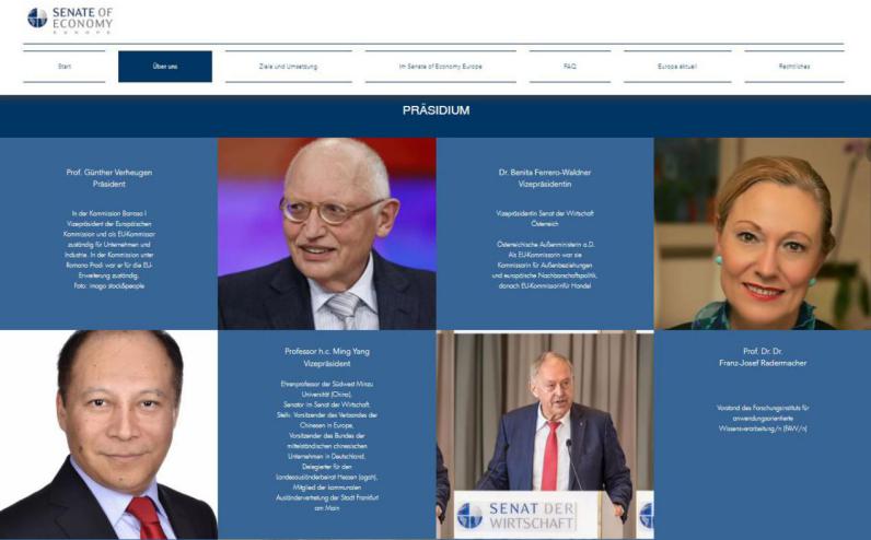 【環球時報歐洲版記者 蘇曉】德國華人楊明先生出任歐洲經濟參議院主席團成員並高票當選副主席。總部位於布魯塞爾的歐洲經濟參議院由歐盟26國來自於政治、經濟、社會和科學各屆代表和各國經濟參議院的代表組成,它致力於實現歐洲聯盟、聯合國及其所有下屬組織、《全球契約》的目標和全球馬歇爾計劃,促進歐洲一體化和歐洲聯盟作為一個經濟與和平共同體的進一步發展,走向更緊密的財政經濟聯盟,全力推動和發展生態社會市場經濟。前歐盟委員會主席容克先生擔任榮譽主席,前歐盟委員會副主席古恩特.費爾霍伊根先生(Prof.GüntherVongeugen)擔任主席團主席,德國巴符州前副州長德國全球市場領軍企業(世界隱形冠軍)學院院長瓦爾特.多林先生(Dr.WalterDöring)出任執行主席。華人楊明出任副主席將主要負責對華經濟事務。
