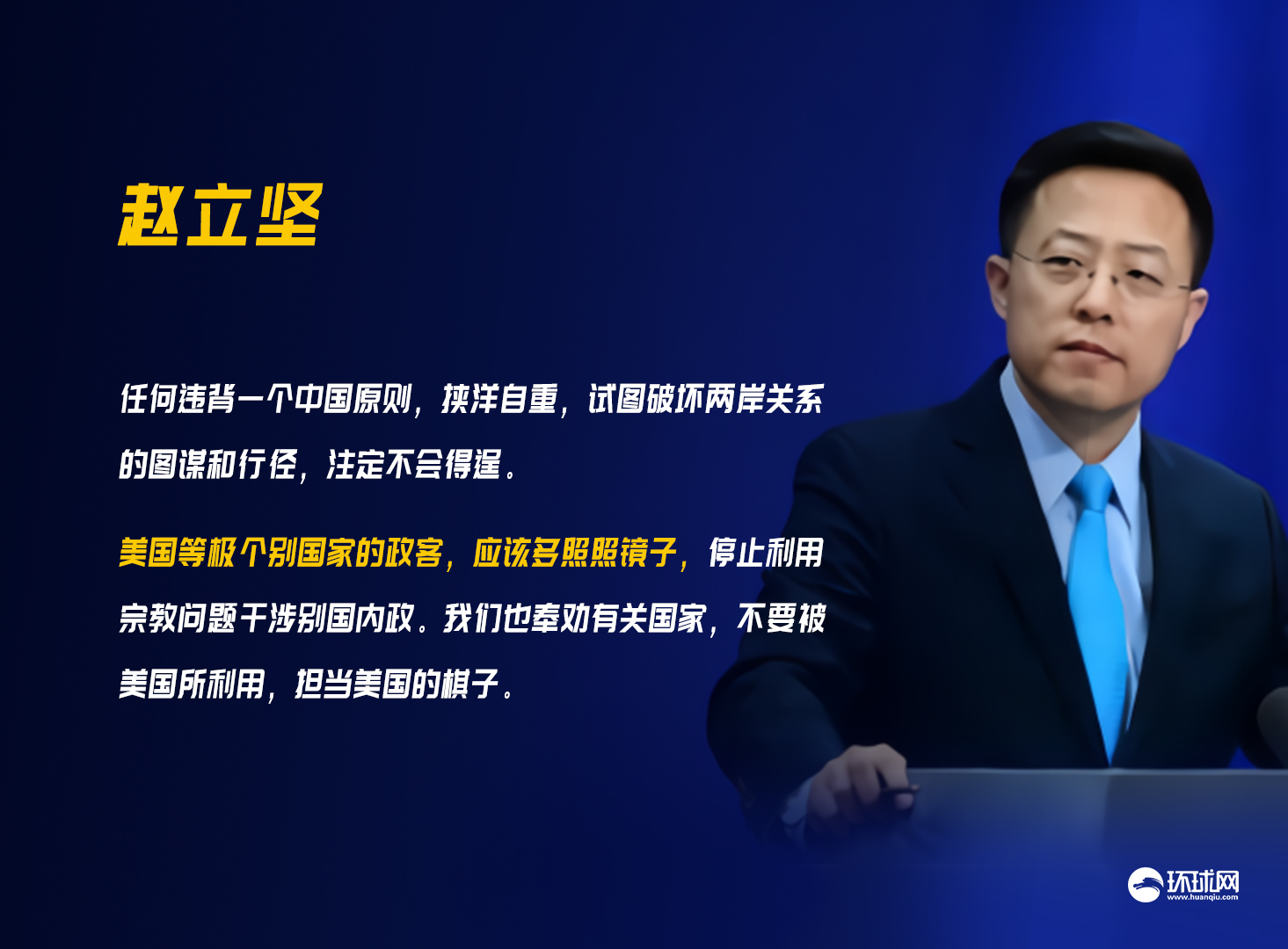 趙立堅表示,美國等極個別國家的政客,應該多照照鏡子,停止利用宗教問題干涉別國內政。我們也奉勸有關國家,不要被美國所利用,甘當美國的棋子。