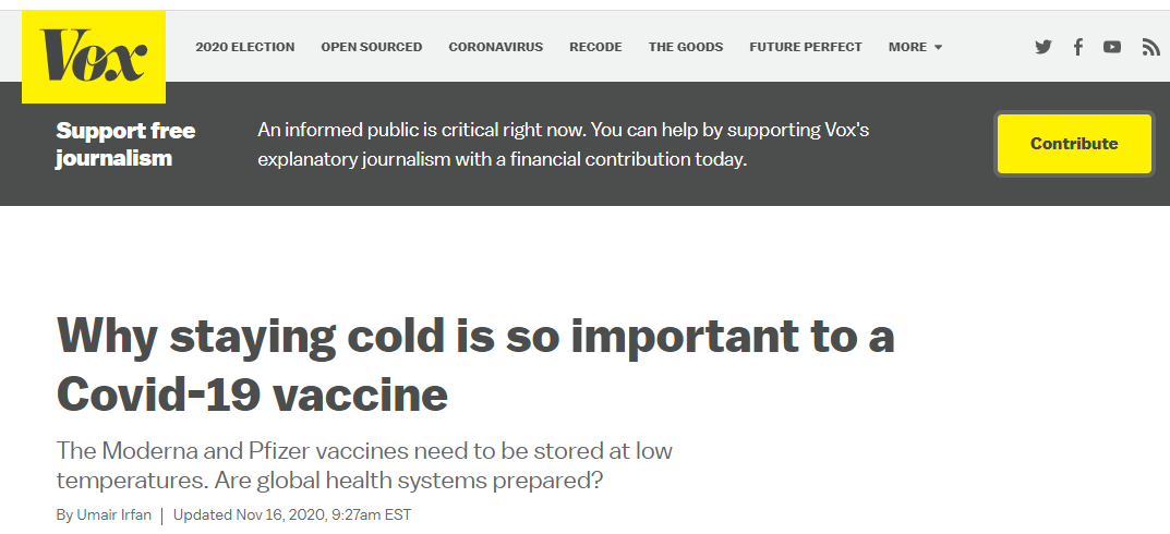 (一些美國媒體自己也指出輝瑞以及美國另一家藥廠莫德納搞出的這種mRNA疫苗最大的難點是對冷鏈運輸的要求極高,物流方面能否支持將是一個巨大挑戰)