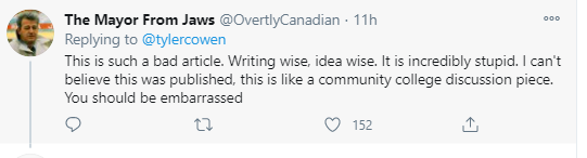 其中一位留言的網民就寫道:這篇文章太爛了,不論是寫作層面還是觀點層面都非常爛,是一篇蠢到令人難以置信的文章,我甚至無法相信這種東西能被髮表出來。