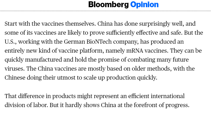 但尷尬的是,從多家外媒的報道來看,輝瑞那個疫苗的核心技術其實是人家德國企業的,輝瑞在其中扮演的更多是組織臨牀實驗等角色。所以,這位美國大教授用一個德國的技術來證明美國比中國領先,首先就很奇怪。