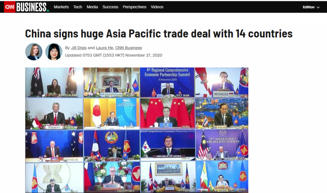 他還在文章中造謠抹黑了中國的“一帶一路”項目,稱中國培育不出可靠的盟友——即便事實是美國才是如今其盟國眼中最不靠譜的那個,而中國則與14個國家共同簽訂了《區域全面經濟夥伴關係協定》(RCEP),攜手構建了世界最大的自由貿易區。
