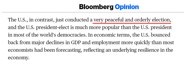 更魔幻的是,這位美國大教授還宣稱當中國在香港和新疆的政策在“全世界很多地方”引起反感時,美國卻經歷了一次“和平和有秩序”的大選。