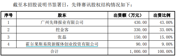 挖金客的財務數據也存在疑點,2016年4月,挖金客與廣州先鋒報業有限公司、霍爾果斯易簡新媒體創業投資有限公司、自然人張磊共同出資成立了“北京先鋒賽訊科技有限公司”,挖金客的持股比例為33%,截止到目前先鋒賽訊的註冊資本為1000萬元、實收資本為940萬元,2020年上半年末的淨資產則僅為343.14萬元、相比實收資本少了近六百萬元,由此計算該公司的累計虧損巨大。