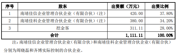 公開信息顯示,這一次收購的對手方、久佳信通的初始創立股東“南靖佳信企業管理合夥企業”已於2020年10月將註冊地由福建省南靖縣變更為貴州省貴陽市南明區,公司名稱也發生了變更;原出資人周曉磊更是早在2019年9月就退出了對南靖佳信的投資。但是在挖金客在今年11月發佈的招股書中,仍然披露南靖佳信企業管理合夥企業(有限合夥)為周曉磊實際控制的合夥企業。