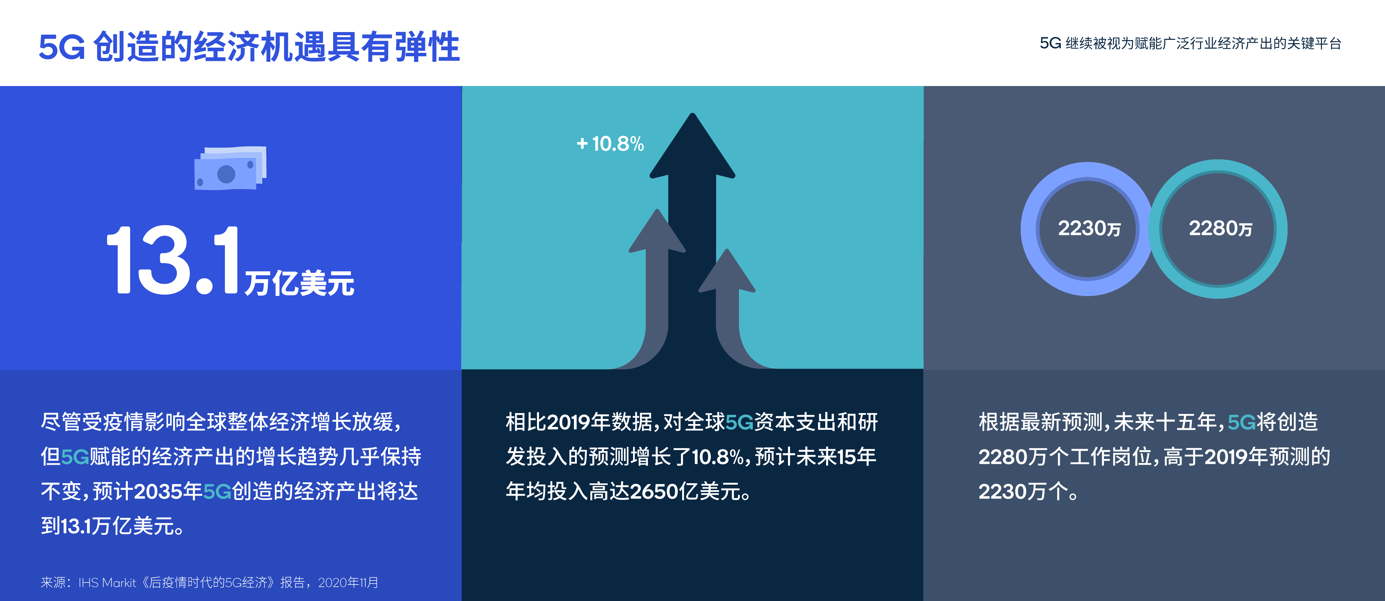IHS Markit經濟諮詢副總監、本次報告的首席分析師Karen Campbell博士表示:“IHS Markit相信,5G的持續深入部署以及5G催生的產品、服務和體驗,將真正滿足後疫情時代人們對連接、靈活性和彈性的迫切需求。”